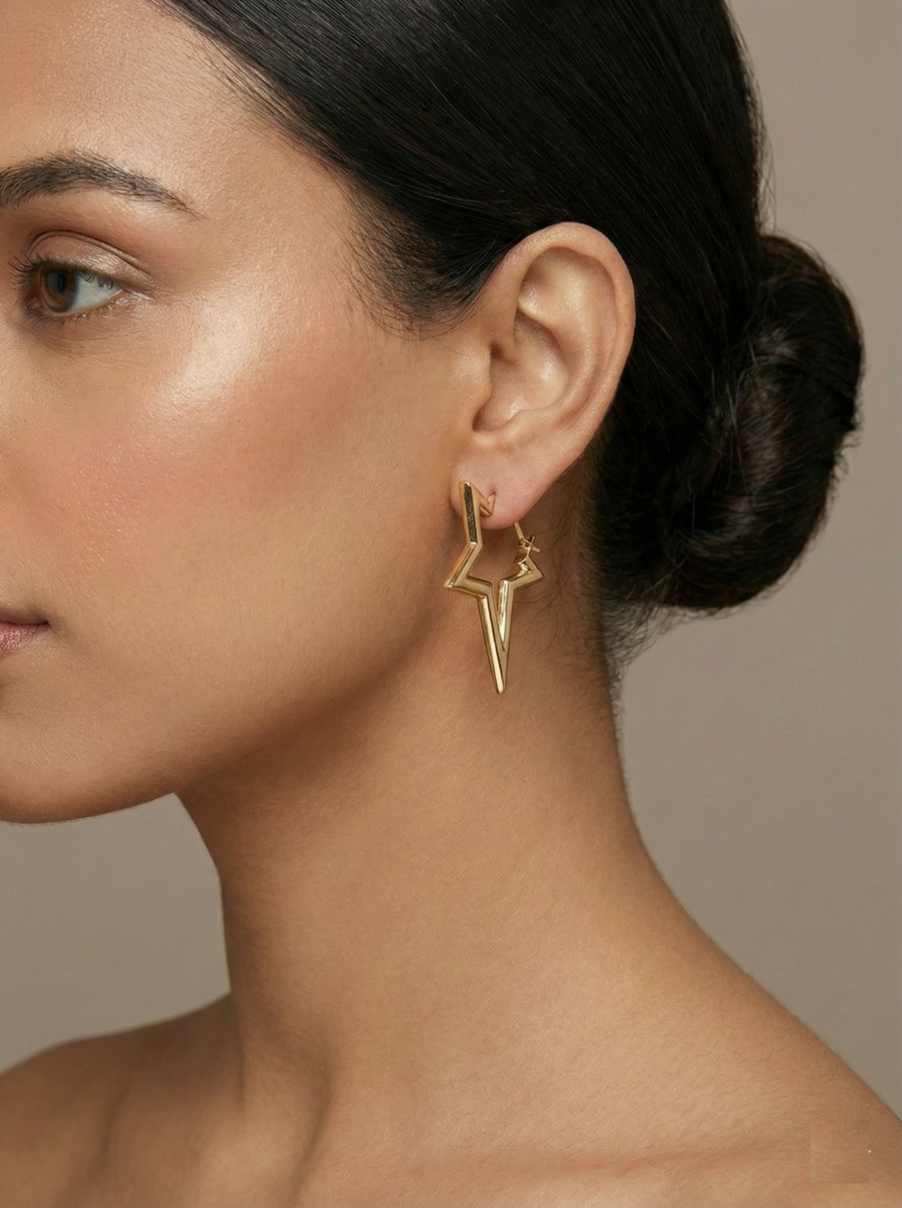 Style these hoops with off-shoulder tops, satin dresses, or structured blouses. Opt for a sleek bun or low ponytail to highlight the star shape and keep the rest of your jewellery minimal for a balanced, modern look.